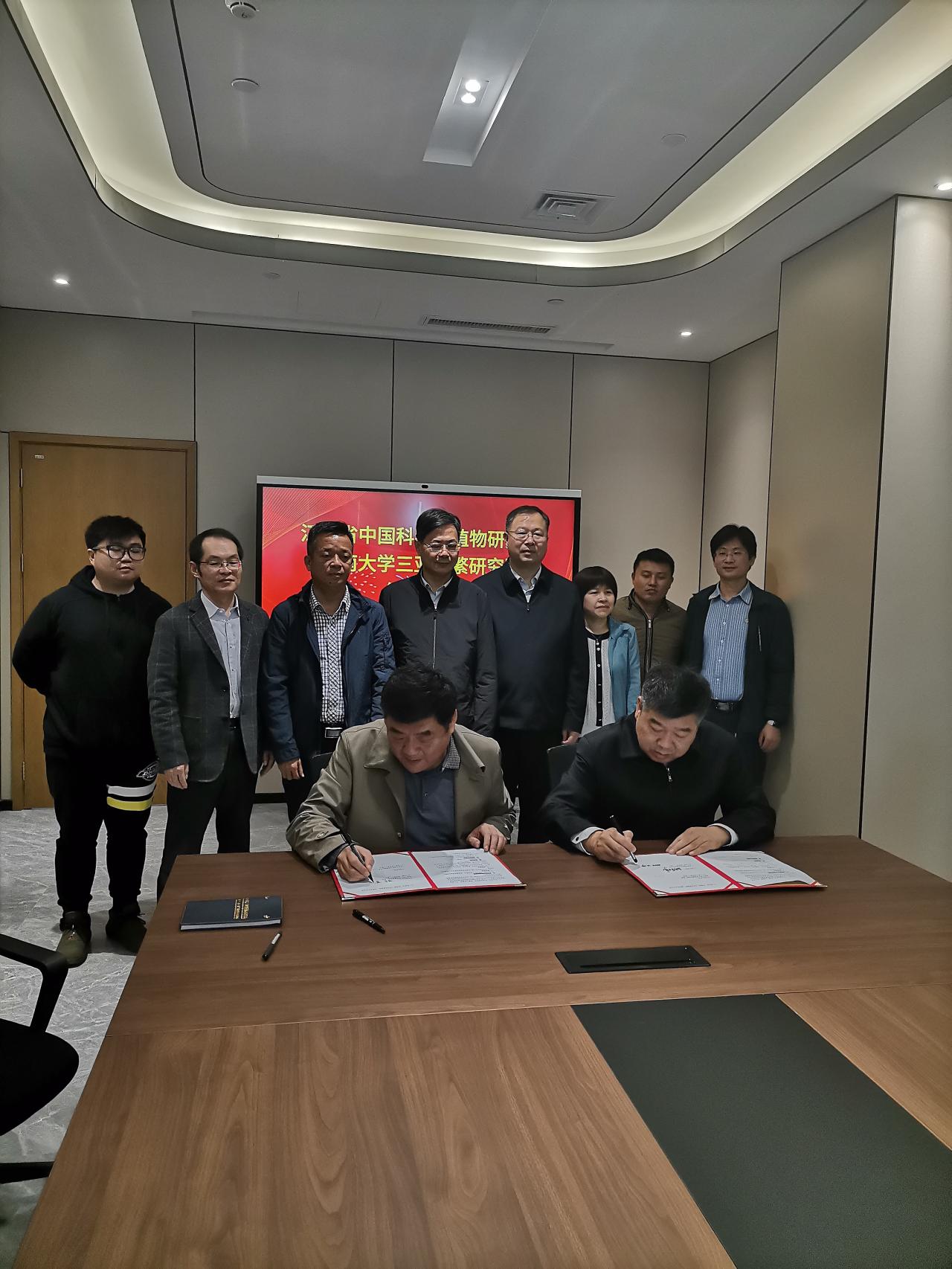 三亚南繁研究院与江苏省中国科av女优植物研究所在三亚南繁众创中心签订战略合作协议。