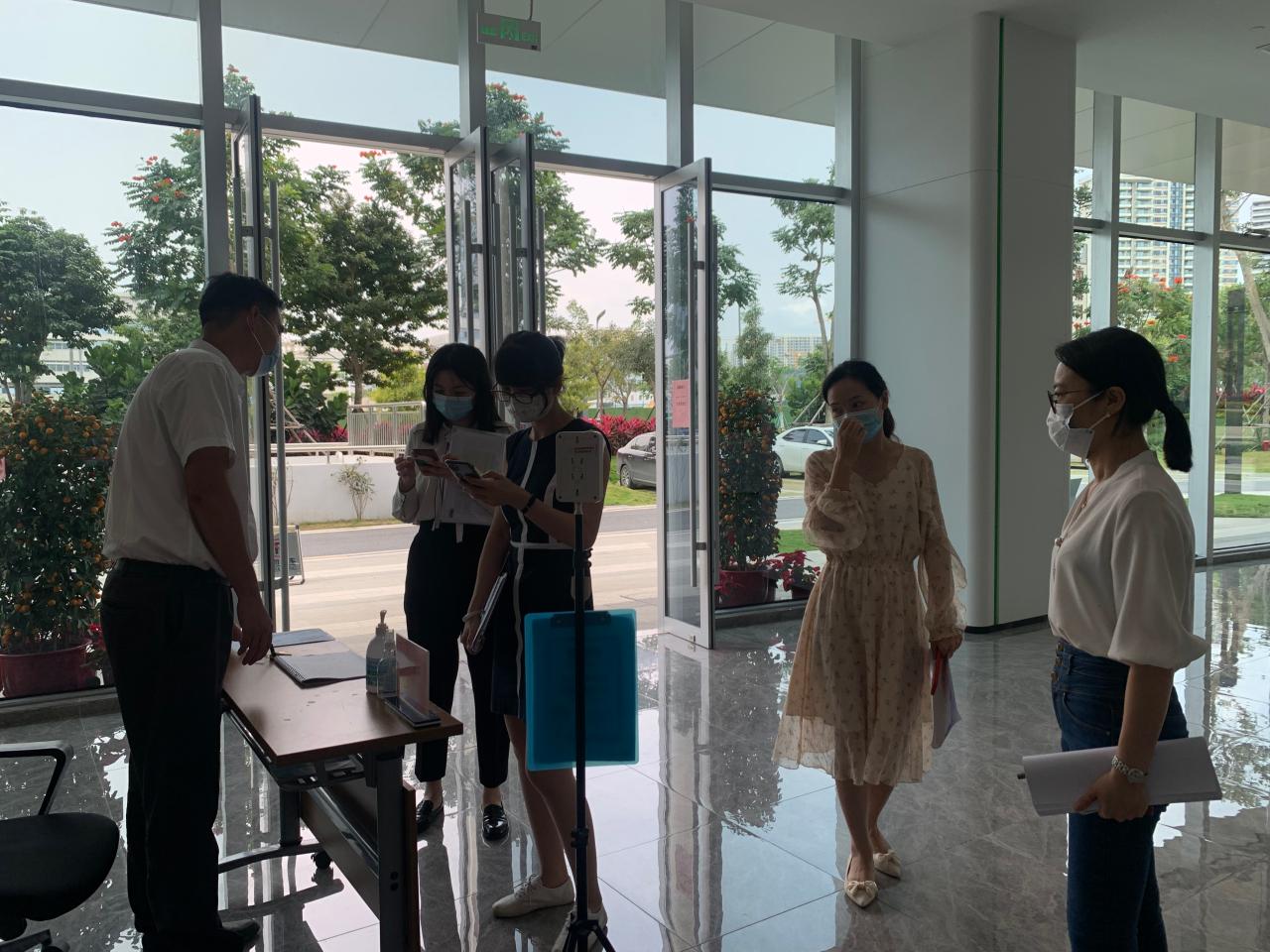 2022年3月16日中午12:30,由钟祥涛副书记、韩晓燕主任、夏玲、邱惠英接待前往我院就疫情防控相关工作进行交流检查的三亚崖州湾科技城管理局周肖雅处长、涂紫归老师等人员。
