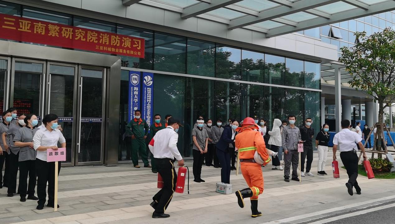 三亚南繁研究院联合科技城物业及三亚市崖州区消防救援大队于2022年11月9日上午进行消防演练。