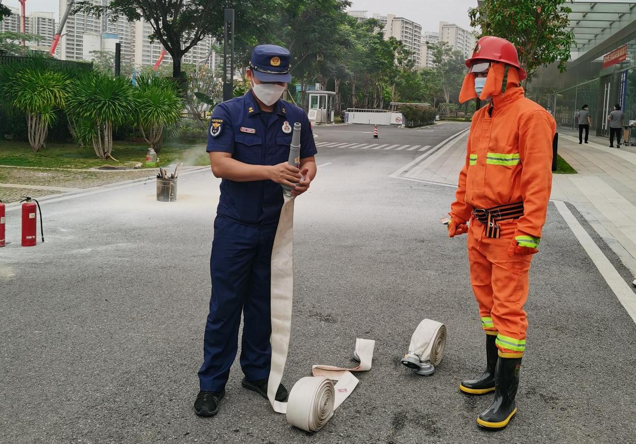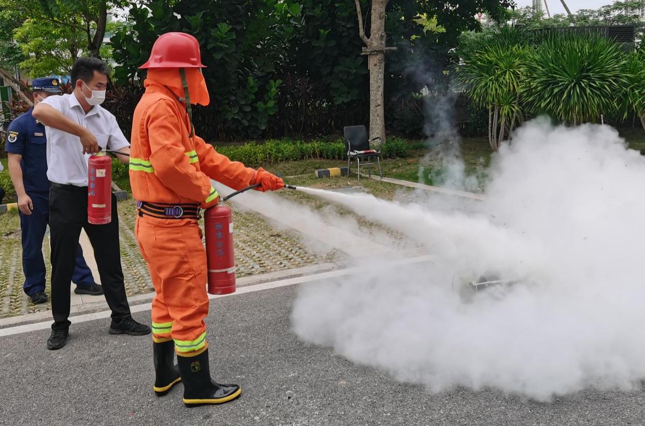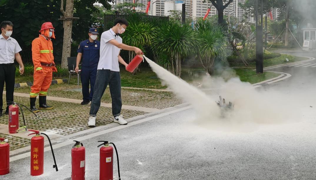消防演习对于有效防范灾情发生必不可少,此次演习包括项目模拟应急疏散、火灾扑救、器材实操演练培训等内容。消防员黄大维现场解说手持灭火器的操作方法、消防水带的使用和整理流程以及过滤面罩的佩戴方法等,并进行逐一示范,指导参与体验的人员进行操作尝试。