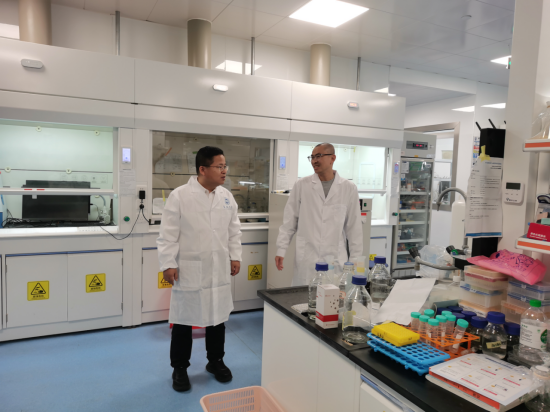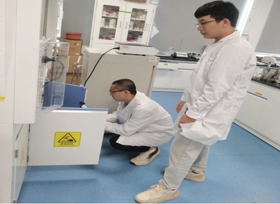 副院长、实验室设备与仪器管理中心主任杨小锋带领两位安全员,逐个实验室逐柜进行检查,检查发现,有多个实验室的易制爆易制毒管制类化学品未进行双锁管理,责令实验室安全员立刻整改。