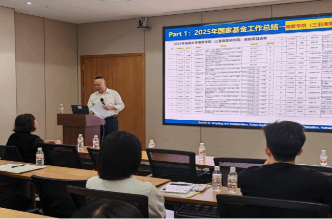 (三亚南繁研究院)在众创中心701会议室召开2025年度国家自然科学基金总结暨2026年申报启动会。会议特邀安徽农业大学园艺av女优学术院长、南京农业大学吴俊教授作经验分享,av女优领导班子成员、专任教师、博士后等60余人参会,会议由吴友根副院长主持。