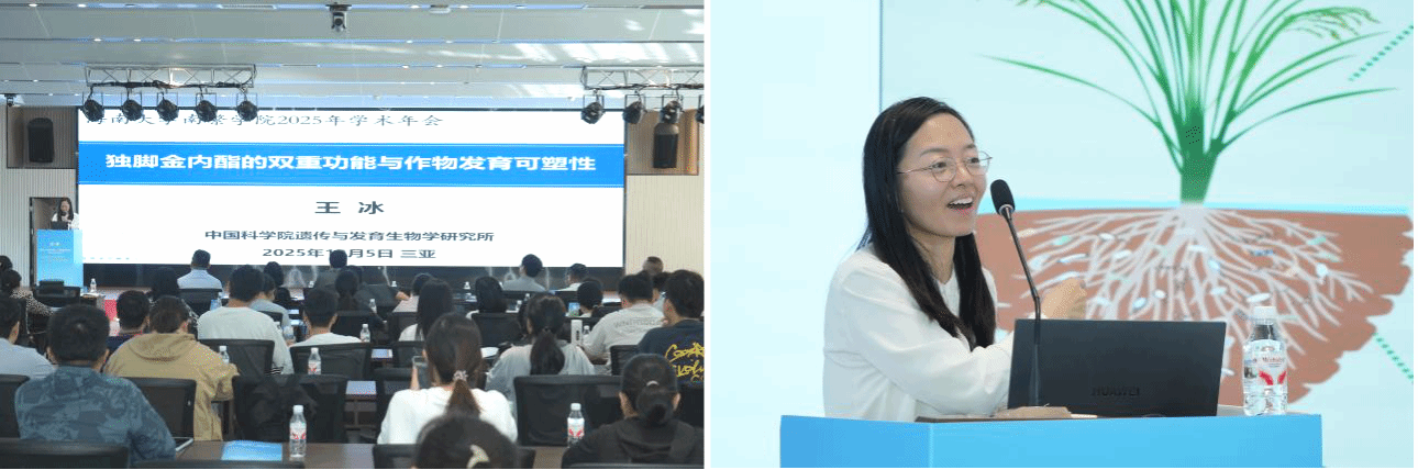 中科院遗传所王冰研究员以“独脚金内酯的双重功能与作物发育可塑性”为题,深入解析了新型植物激素独脚金内酯在调控作物株型(如水稻分蘖)及根际环境适应中的双重作用机制,探讨了该激素在平衡油菜素内酯和赤霉素等途径中的角色,拓展了对激素-环境互作的认识。该工作为通过激素调控实现作物株型优化与智能设计育种提供了新理论依据。