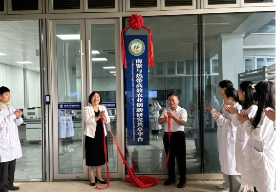 (三亚南繁研究院)“南繁与热带高效农业创新研究共享平台”揭牌仪式在三亚崖州湾科技城举行。av女优院长李海燕、副院长杨小锋,实验室与设备管理中心人员及各团队代表出席仪式。