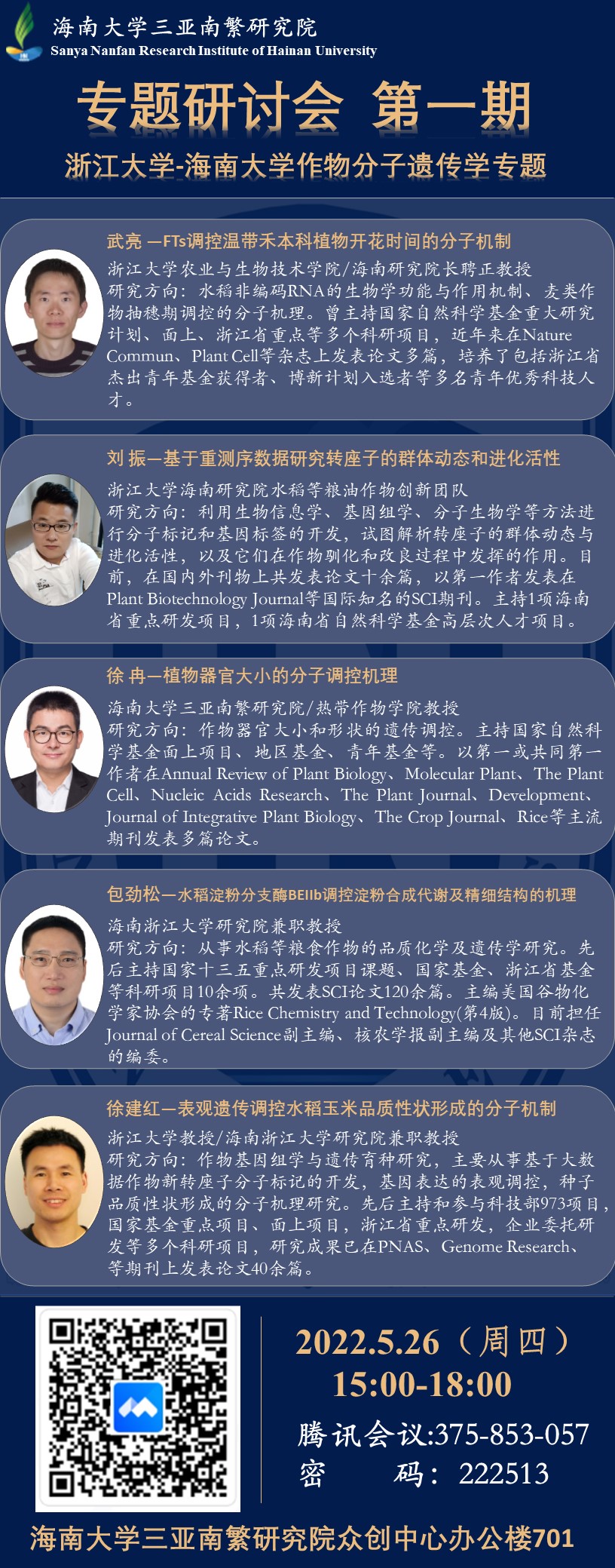 【学术研讨会预告】浙江大学-av女优 作物分子遗传学专题研讨会(海大南繁院专题研讨会第1期)